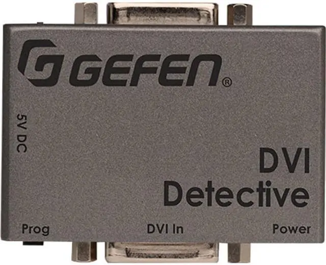 Displays use EDID - Extended Display Identification Data - to communicate to computers the array of video resolutions and timings that they are capable of displaying. In certain situations this data can be lost resulting in incorrect display settings, or even a complete loss of video. The DVI Detective N solves this problem by ensuring that a correct EDID signal is constantly available to the DVI source, even if the display is switched to a different computer. Gefen has designed the DVI Detective N for quick and easy programming and installation. After a simple EDID recording process is completed, the Detective is placed at the DVI output of the computer's video card where it will provide the computer with a constant EDID signal. The DVI Detective N is equipped with DVI ports, but it is also compatible with VGA through the use of optional adapters.