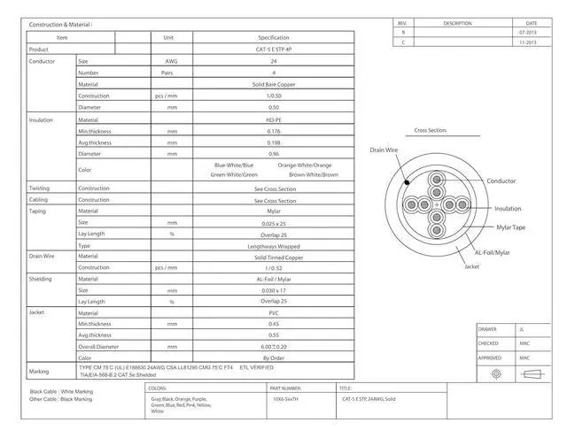 Quality Material for best performanceExceeds EIA/TIA-568-C standardETL VerifiedUl/CSA Approved