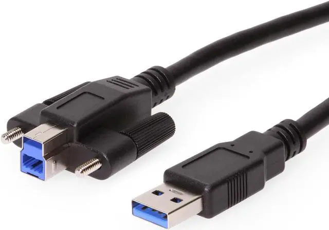 5ft. USB 3.2 Gen 1 SuperSpeed cable with a standard type "A" and type "B" screw lock connector end. This cable is durable and can process data speeds of up to 5Gbps with computers and devices using USB 3.2 Gen 1 compliant host ports. The USB 3.2 Gen 1 screw lock cable securely attaches to the USB 3.2 Gen 1 Type-B port by tightening the connector screws on the cable to the destination port interface.