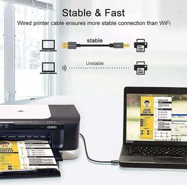Universal CompatibilityThis Printer cable compatible with Epson XP-600 / XP-200 / WF-7710 / XP-225 / XP-425 / XP-446 / XP-440 / XP-630 / XP-310 / C88+Epson?Workforce 545; HP Envy 5660 / 4520 / 5055, HP?Deskjet 3050 / 1112 , HP\u2002Photosmart 5520 / 7520 / C4750 , HP 8600 office pro / HP Laserjet Pro M118DW /,?Brother?MFC L-27000W, Brother HL-L2300D, Denon MC8000?MIDI?controller, Focusrite 2i2 Audio Interface, Bluetooth Cannon MX492, Akai?USB EWI, MIDI controller and MIDI keyboard with USB 2.0 B