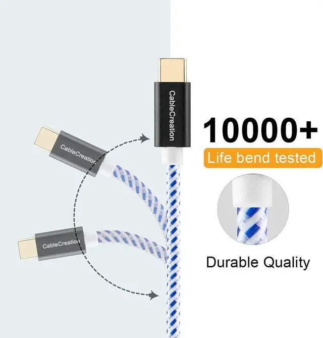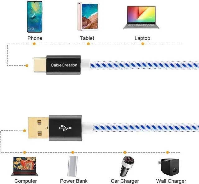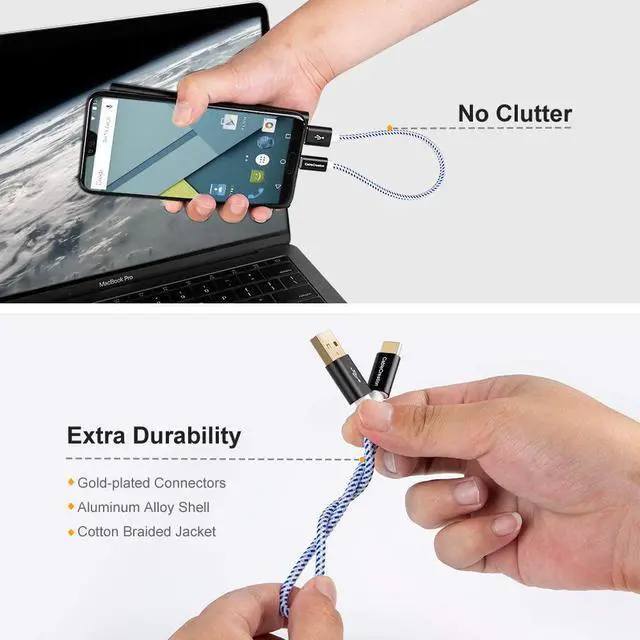 Dynamic and Fashionable two-tone black and white Braided, Reversible gold-plated usb-c connector, Aluminum case, The use of more durable.