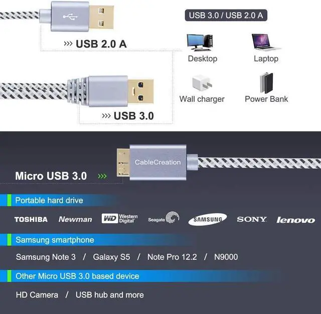 ?What You Get1 x CableCreation USB 3.0 A male to Micro B cable, backed with 24 months product warranty as well as friendly lifetime technical support.