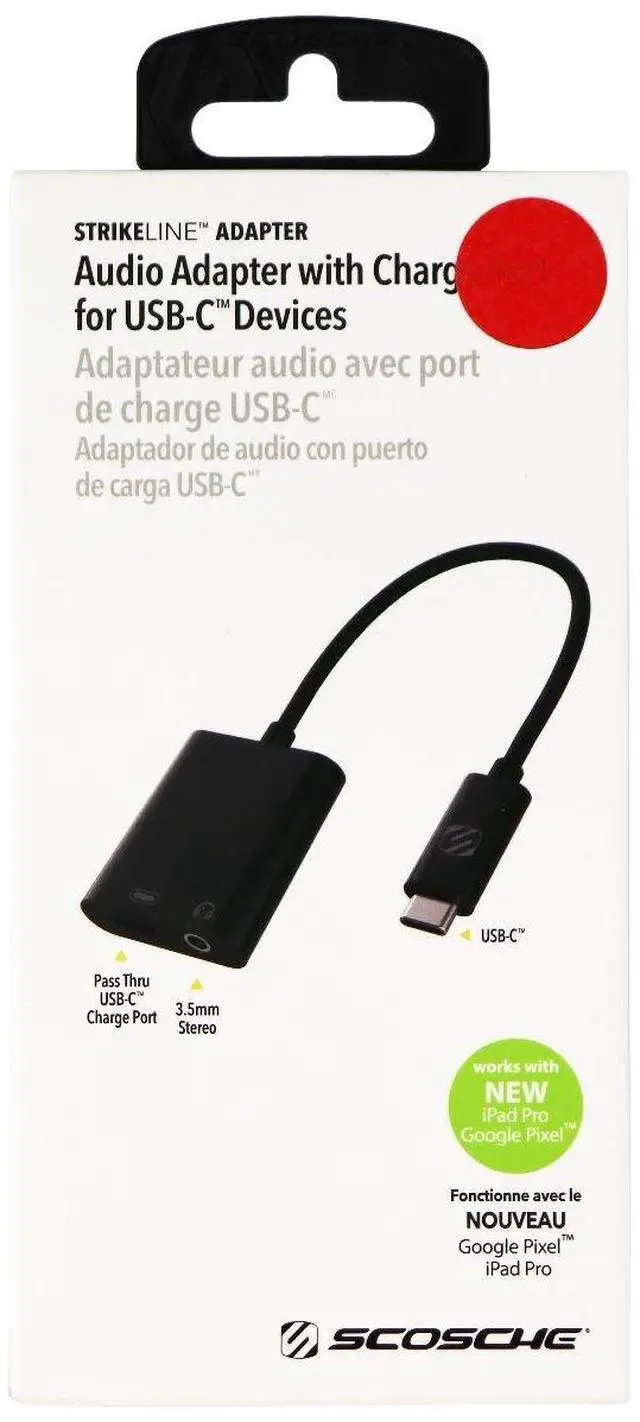 The StrikeLine Adapter allows you to connect your Google Pixel 2 or 2 XL to other devices with a 3.5mm Aux connector such as headphones a car stereo or a portable speaker while charging your phone with a Type-C cable or charger (Not included). The StrikeLine Adapter supports Power Delivery fast charging.