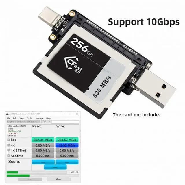 This is CFast to USB adapter Reads and writes to CFast2.0 via standard USB-C/USB-A interface.