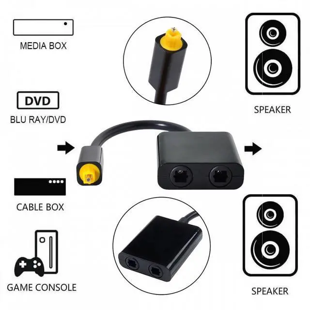 2port Toslink Digital Optical Audio Splitter Adapter Fiber Optic Audio Cable 1 In 2 Out,Length 10cm, black color