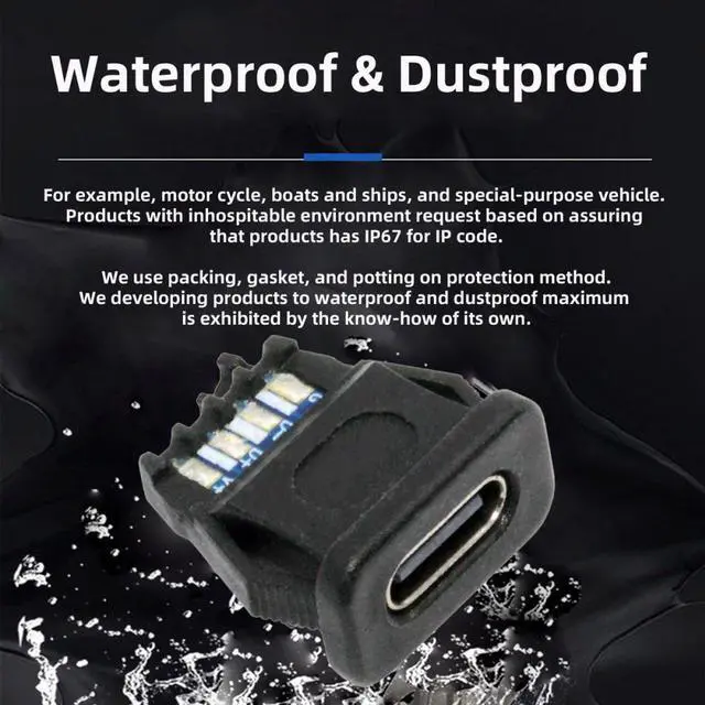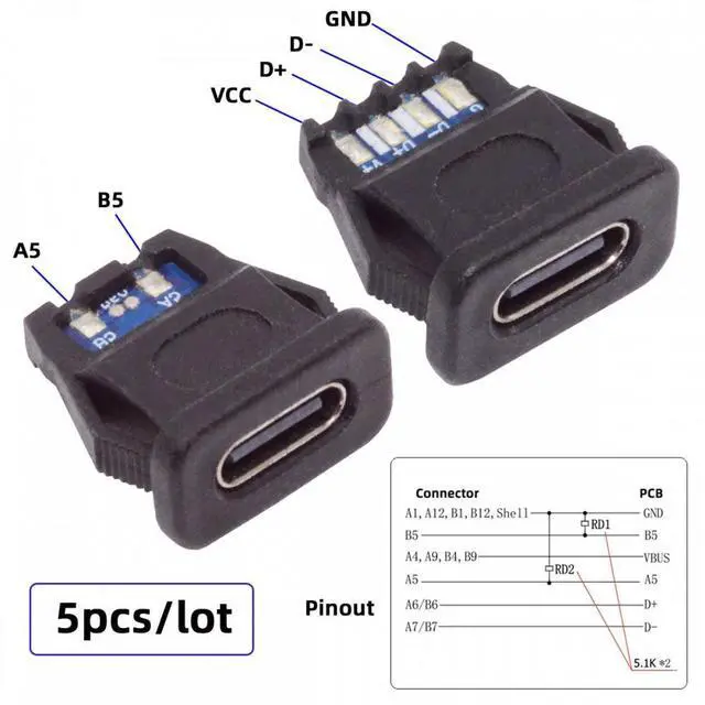 5pcs/set DIY OEM Type C Female Socket Connector to 6Pin PCBA Pinout Rectangle Latch Mount Type DC 5V/20V PD Power IP67