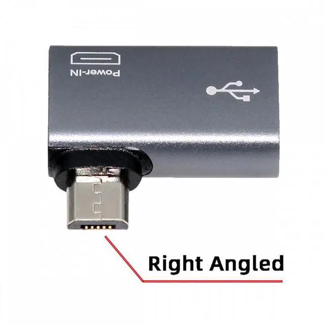 Micro USB 2.0 to Type-A Female OTG Host Adapter 90 Degree Angled with USB Power for Phone Tablet