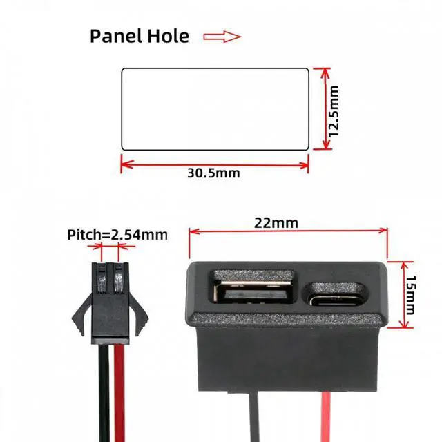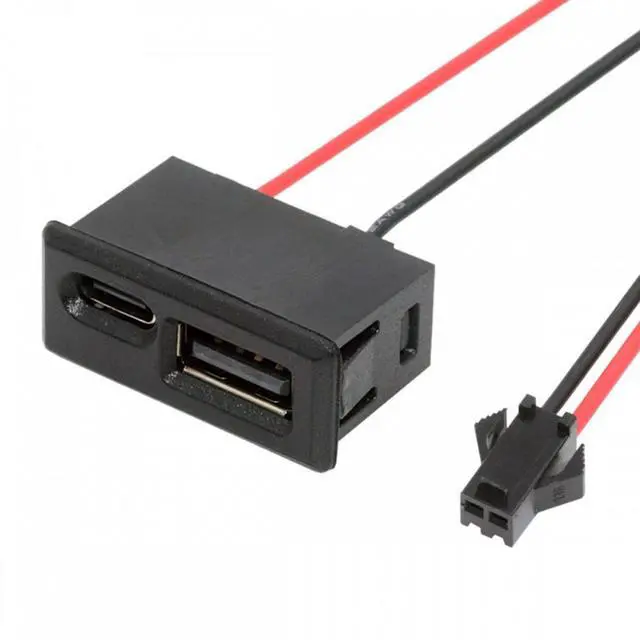 DIY OEM Type-A and Type-C Female Socket Horizontal to 2Pin Header Cable Pitch=2.54mm Latch Mount Type DC 5V Power