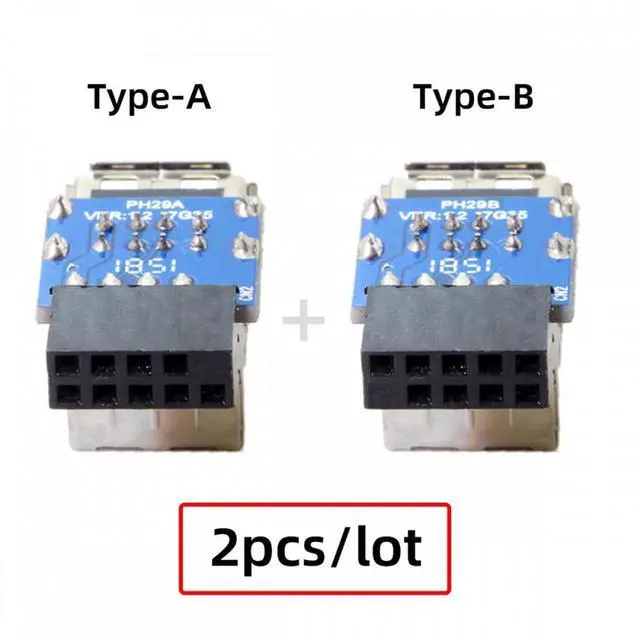 Different connector direction for two adapters.Type-A and Type-B, Two type in the package.(Please refer the key of 9pin header)