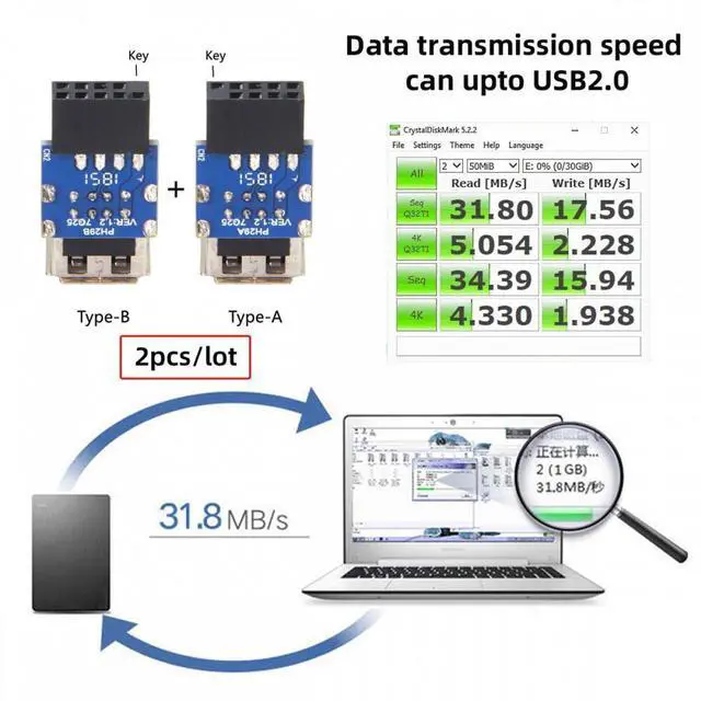 The adapter Provides a high speed of 480 Mbps, standard 2.0 connector provides excellent electrical conductivity, and high-speed transmission data is fast and accurate.