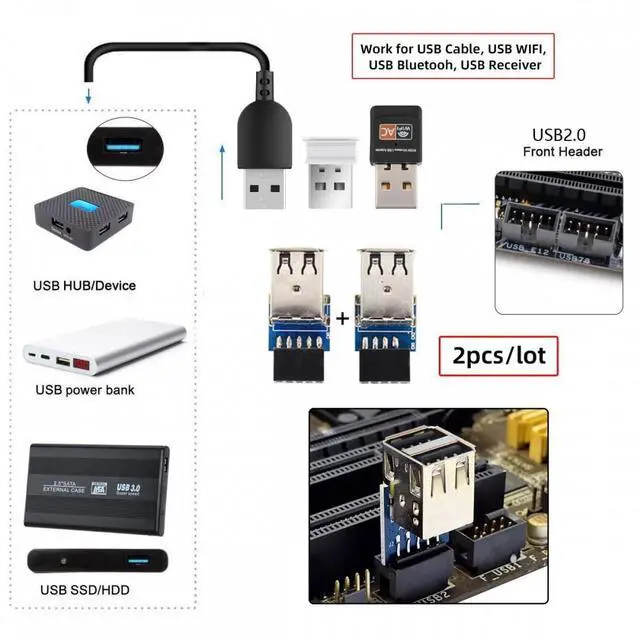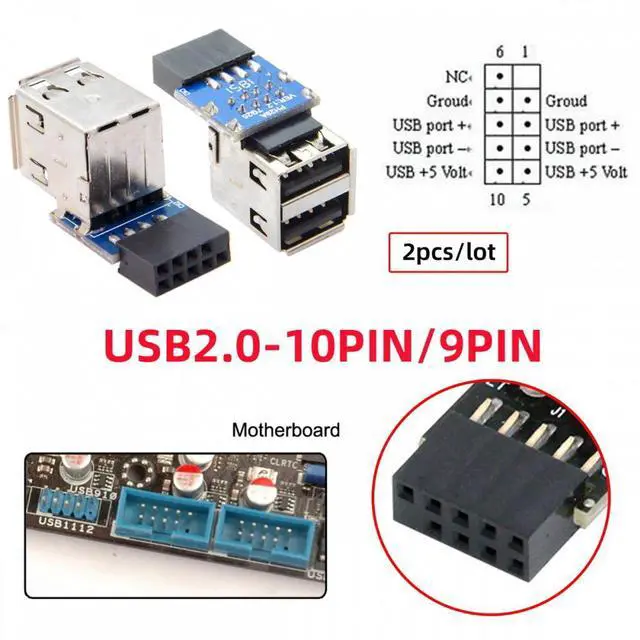 You can convert the 9pin motherboard internal port to usb 2.0 device. Used to connect USB cables or adapter in tight fit applications.