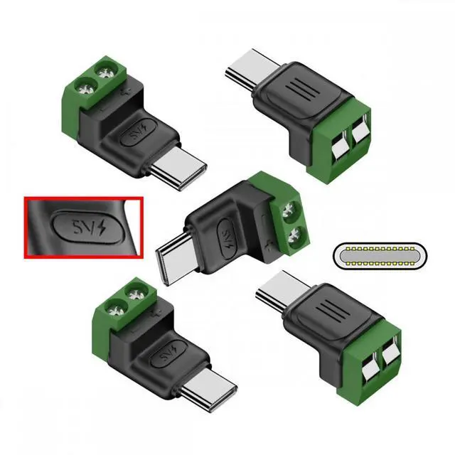 • 5pcs/set 2Pin Terminal Input to Type-C Male Plug Output Connector DIY OEM Repair Solderless Connector DC 5V Power