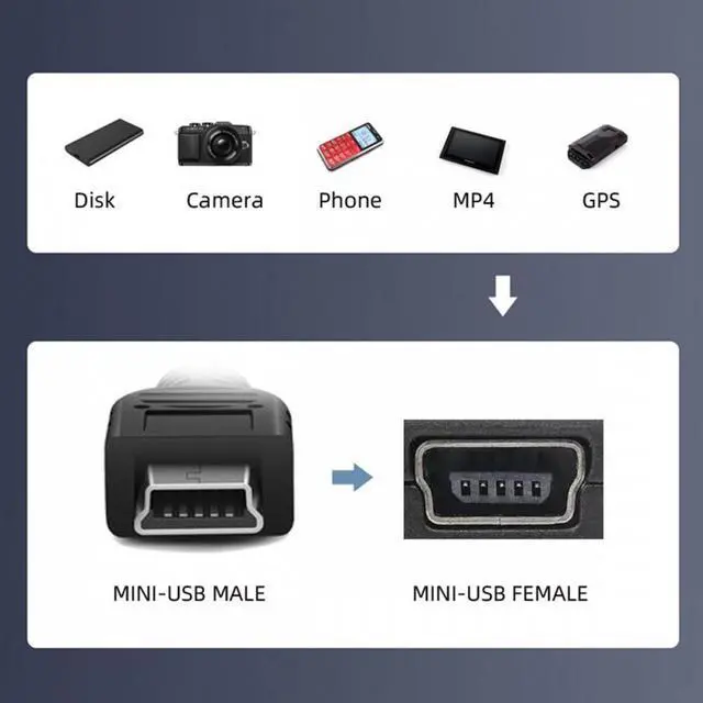 Used to connect USB Mini cables in tight fit applications. Can work for all mini USB 5pin device extension.