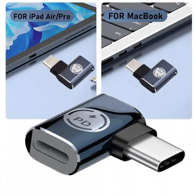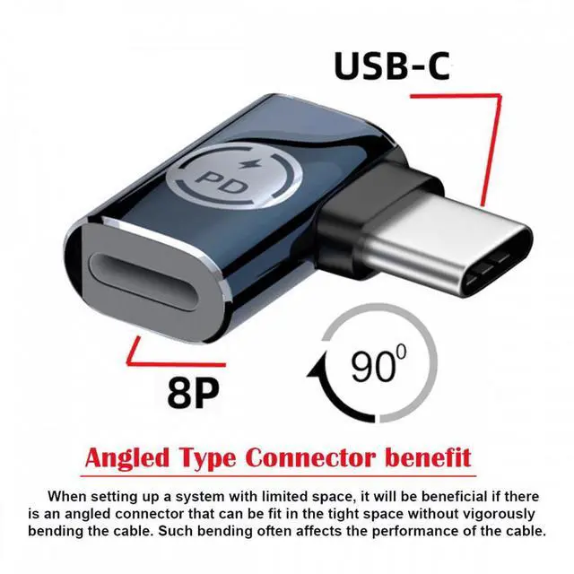 USB-C Type-C Male to 8P Female 27W Power 480Mbps Data Adapter Angled Compatible with iPhone 15 and Android and Tablet