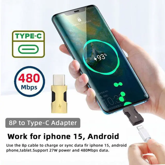 • USB-C Type-C Male to 8P Female Power 480Mbps Data Adapter Compatible with iPhone 15 and Android and Tablet