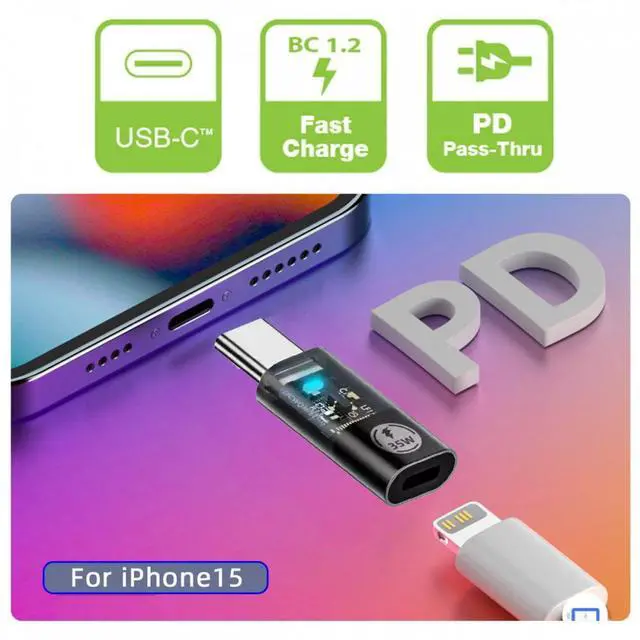 USB-C Type-C Male to 8P Female 35W Power 480Mbps Data Adapter Compatible with iPhone 15 and Android and Tablet