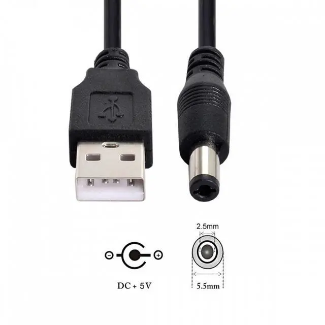 • USB 2.0 A Type Male to 5.5 x 2.5mm DC 5V Power Plug Barrel Connector Charge Cable