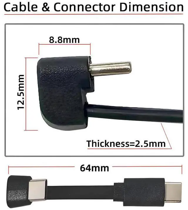 Ultra Slim Flat USB-C Type-C Male to Female Extension Power USB2.0 Data Cable Opposite U Shape Back Angled 65W Fast Charge for Laptop Tablet Phone
