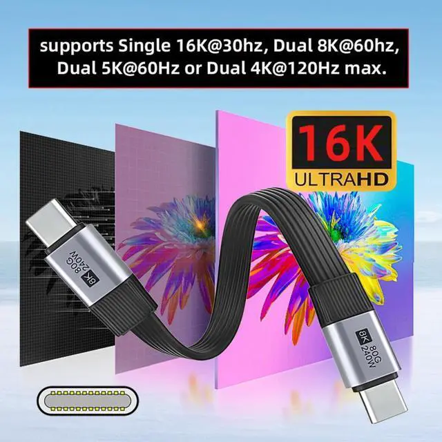 20cm USB5.0 80Gbps Flat Slim FPC Male to Male Extension Cable 240W 16K 8K 60Hz 5K Compatible with 40Gbps USB4.0 Thunderbolt3/4/5
