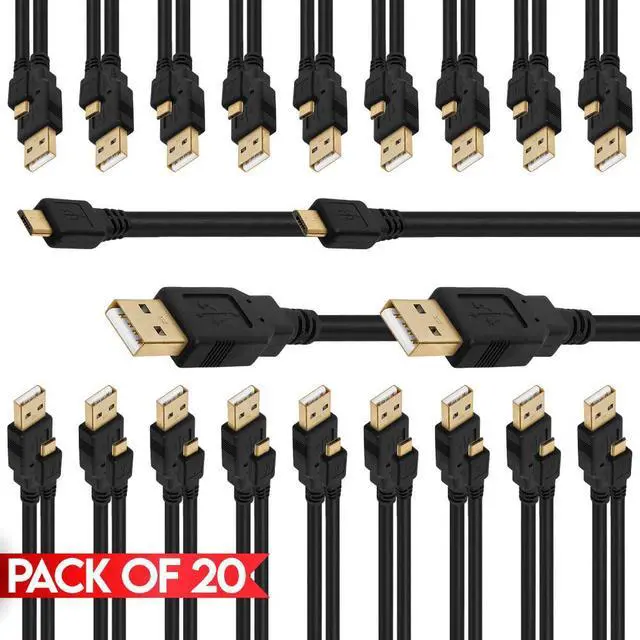 Cmple Lot of 20 Micro USB Male to USB Male Cable - 1.5 Feet Black