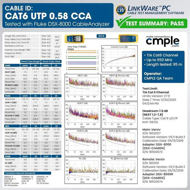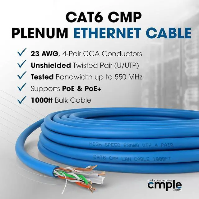 Package Includes: 1000 Feet Cat6 Ethernet Cable is a CMP UTP Bulk Wire, 550 MHz - White