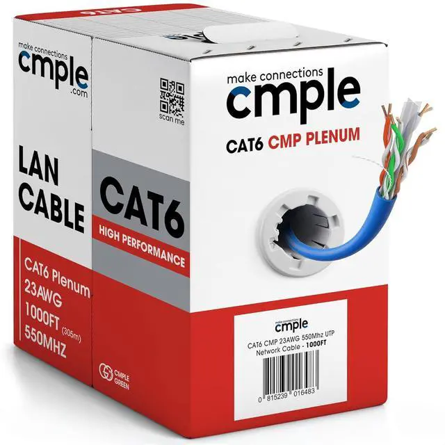 1000ft Cat6 CMP-Rated Cable Designed with a strong plenum-rated jacket for safe indoor use, this cable provides excellent durability and fire resistance. Its solid conductors help deliver reliable signal quality and long-lasting performance.