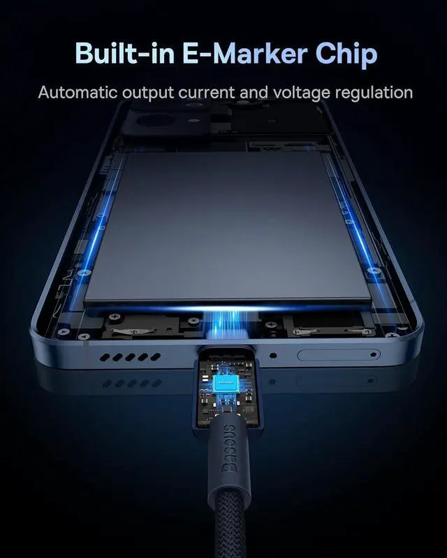 Certified E-Marker ChipThe certified smart chip regulates the current and voltage, ensuring the safest 100W fast charge. You can use it to charge any device with confidence.