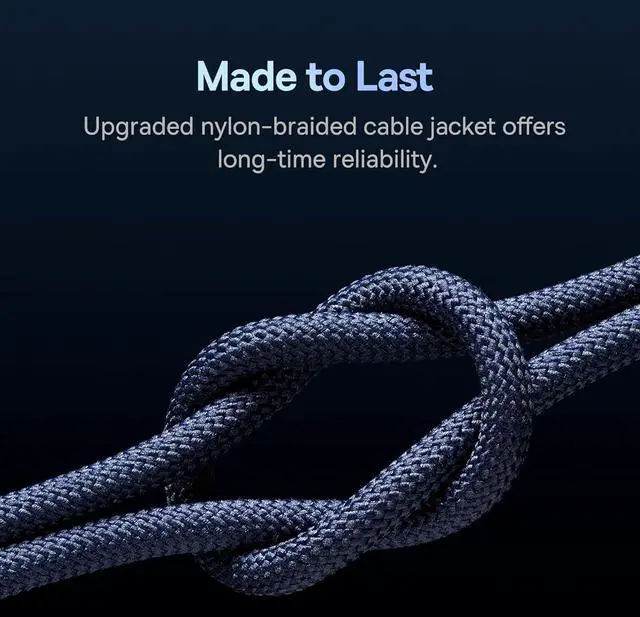 Build to LastPremium Zinc alloy material, with smooth UV coating and integrated design, makes this cable oxidation resistant and colorfast. The high-quality nylon braided cable will not wear out with prolonged use.