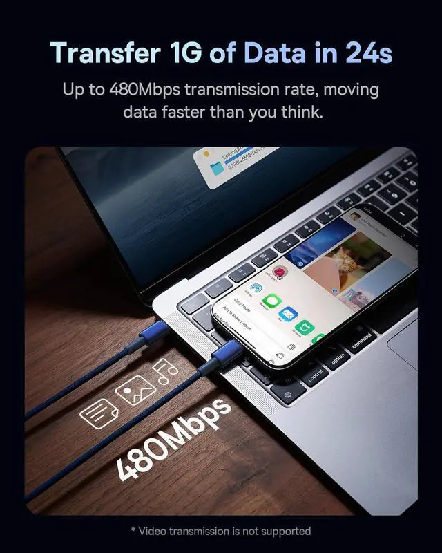 Note: This usb c cable is for data transmission only and does not support video transmission )
