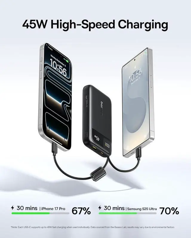 Baseus USB C to USB C Cable, 100W Retractable USB C 5A Fast Charging Cable, 4-Stage Length Preset USB Type C Charger Cord for iPhone 17 16 Pro Plus Pro Max, MacBook, iPad, Samsung S24/S23+ (3.3ft) Baseus 20000mAh Compact Portable Charger 45W, CCC Certified Power Bank Built-in USB-C Cables, Travel Essential PD Fast Charging Battery Pack for iPhone 17/16 Series Galaxy S25/S24 Ultra Google iPad