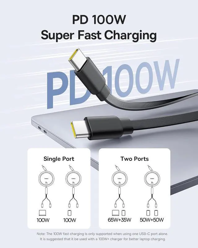 2-in-1 Design: This multi-charging cable lets you fast charge two devices at the same time, including your laptops, phones, or tablets. The maximum total output can reach up to 100W. Charge more and charge faster to save you time.
