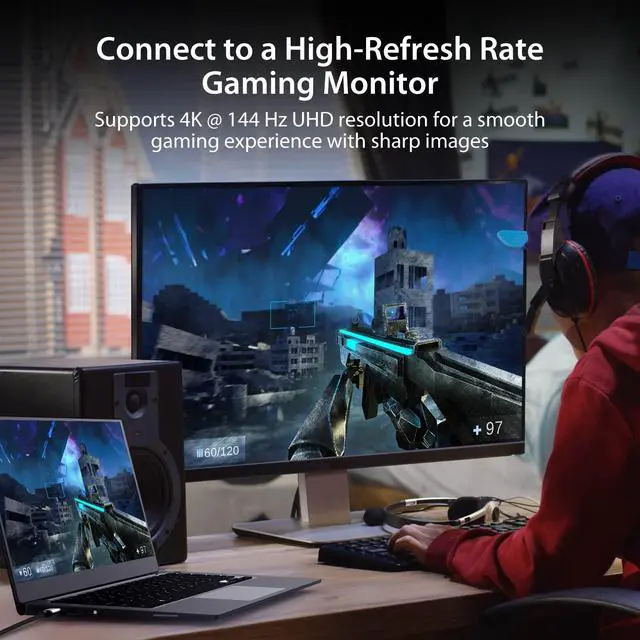This adapter offers the latest USB-C to 8K or 4K 144Hz HDMI connection, letting you connect an HDMI display to a gaming laptop, tablet, or phone that supports DisplayPort Alternate Mode, for a plug and play connection.