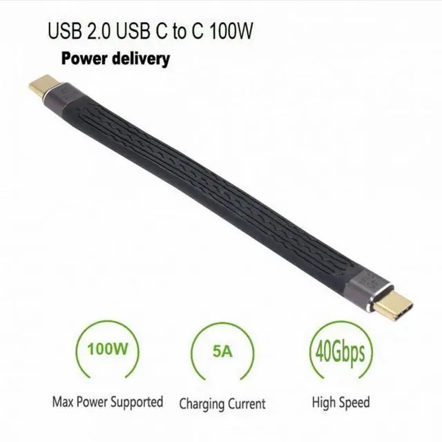 • Type-C USB-C Male to Male USB4 40Gbps 100W 8K Flat Slim FPC Data Cable for Laptop Phone 13cm