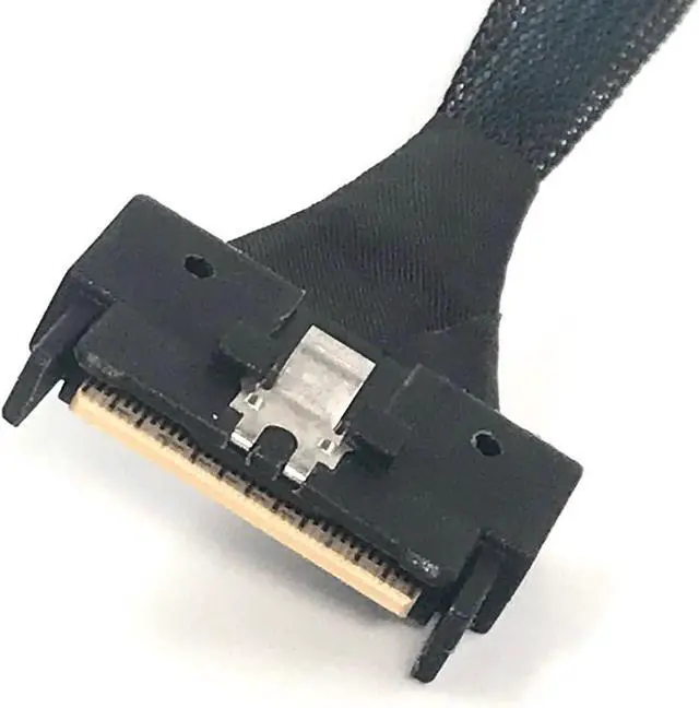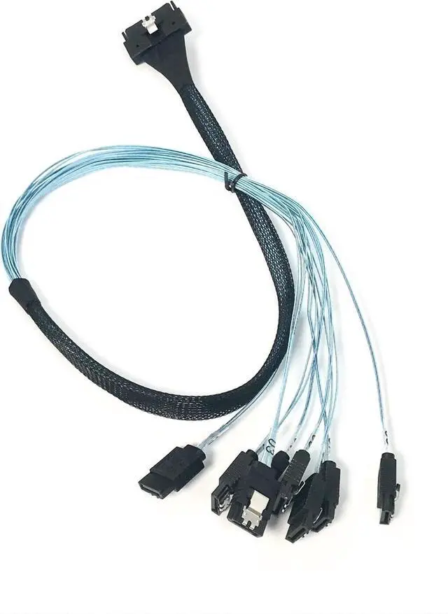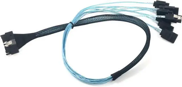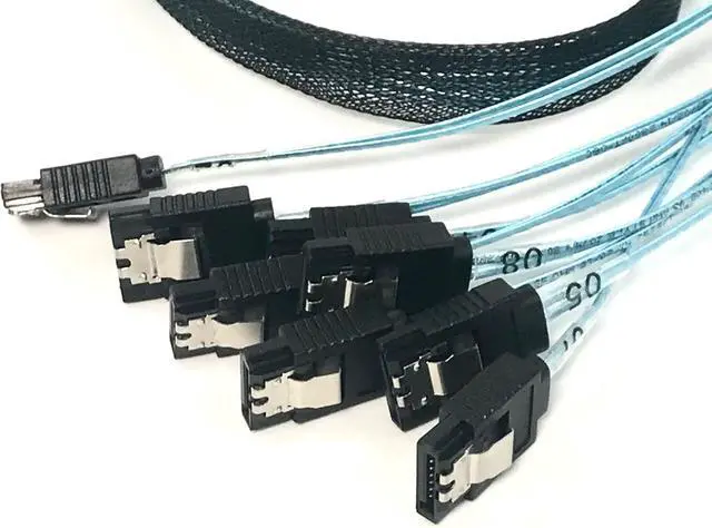 The MCIO 74 pin to 8 x SATA 7 pin cable is a versatile cable that allows for efficient data transfer between a server's MCIO 74 pin connector and up to 8 SATA devices. The cable is 60 CM in length, making it ideal for use in server racks and other data center environments. It is easy to install and use, with no additional software or drivers required. The MCIO 74 pin to 8 x SATA 7 pin cable is manufactured with high-quality materials to ensure reliable and efficient data transfer, and is designed to be durable and withstand frequent use and harsh environments. Micro SATA Cables PN # MCIO-2051-8X7P