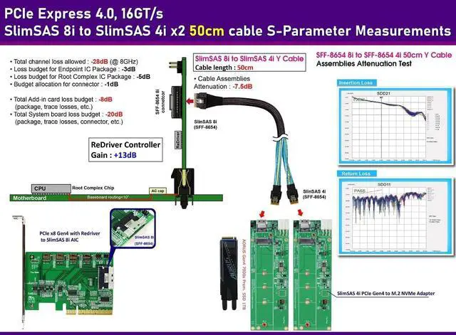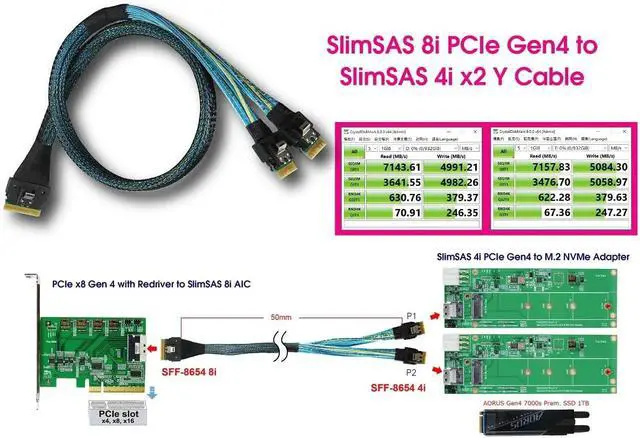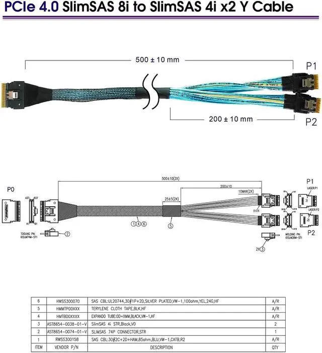Introducing the PCIe Gen 4 SlimSAS 8i to SlimSAS 4i X2 Y Cable (50cm), designed for those who demand high-performance data transfer without sacrificing space or flexibility. Operating at an impressive 16GT/s, this cable is engineered to meet the rigorous demands of PCIe Gen 4 applications, ensuring seamless connectivity and rapid data exchange. Its innovative Y-shaped design allows for versatile connectivity options, making it a perfect solution for various configurations and setups.