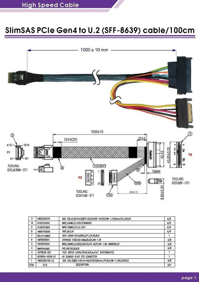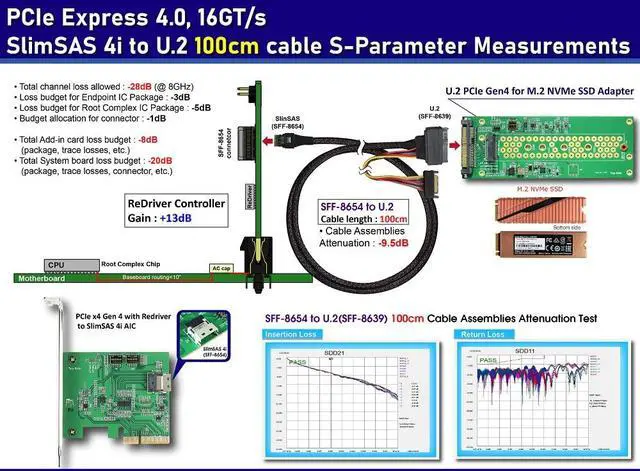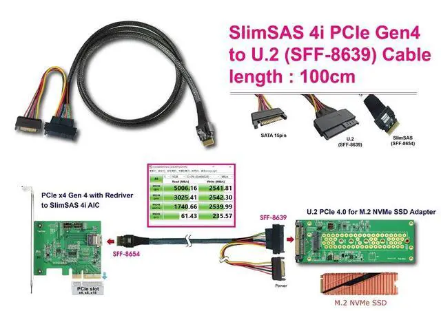 The SlimSAS 4i PCIe Gen4 to U.2 (SFF-8639) Cable - 1 Meter is a premier connectivity solution, designed to enhance your data transfer capabilities with remarkable speed and reliability. This high-quality cable is specifically engineered to bridge the gap between your PCIe Gen4 controller and U.2 drives, facilitating blazing-fast data transfer rates that meet the demands of todays data-intensive applications.