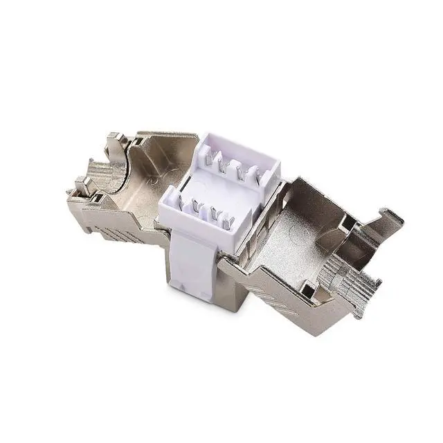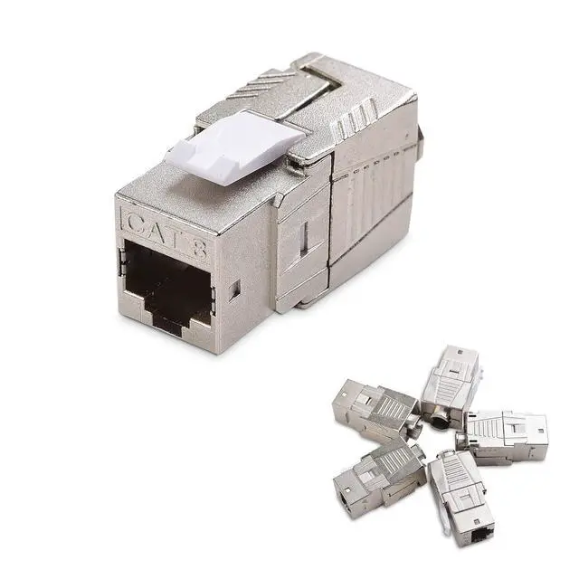 The Cable Matters Shielded Metal RJ45 Cat 8 Keystone Jack provides an affordable copper-based alternative for connecting 10, 25 or 40 Gigabit Ethernet channel components. The standard keystone face size fits patch panels or wall plates with standard keystone blanks for use with 22-24 AWG shielded cable. It provides an affordable alternative to fiber or Twinax direct attach cable while providing backward compatibility and connections up to 30 meters.