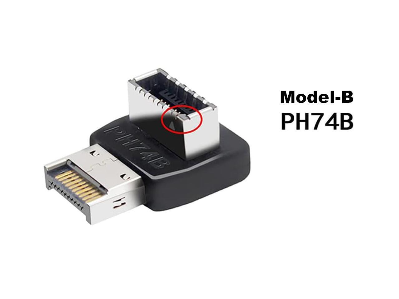 USB 3.2 Internal Header Adapter, Motherboard Type-E 90 Degree Angled Male to Female Connector for USB-C 10G 20G Port Front Panel Rear Bracket Cable-Model-B