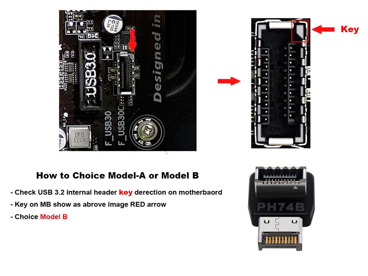 - Model-A and Model B provide as optional,Please check the USB type-E header equipped on your motherboard carefully before order the adpater
