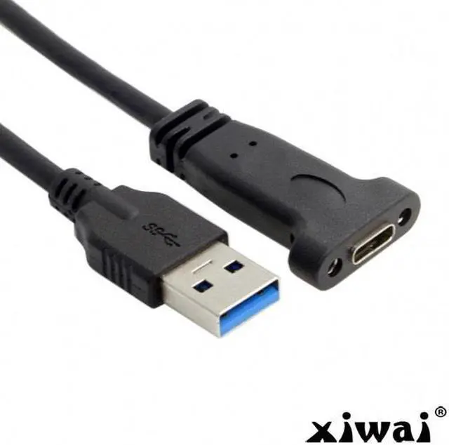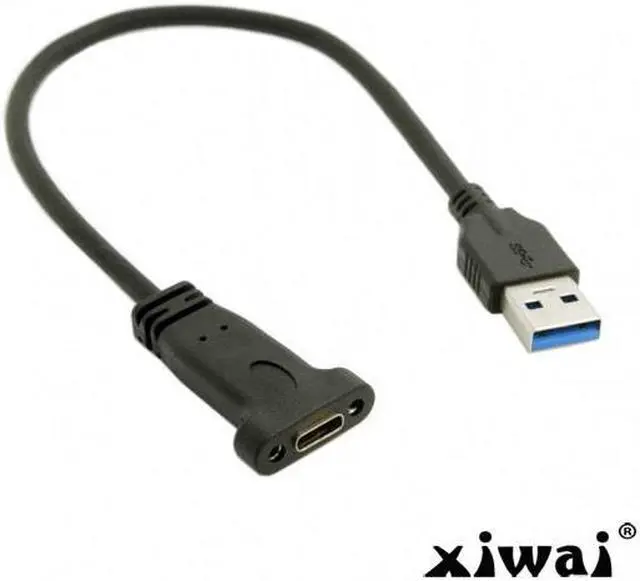 USB-C USB 3.1 Type C Female to USB 3.0 A Male Data Cable 20cm with Panel Mount Screw Hole Type C connector is the new design for USB 3.1 Reversible Design for Type C connector for Macbook Tablet &Mobile Phone & Hard Disk Drive The cable only transfer the usb 3.0 data and power, cannot connect usb-c video/audio and other adapter to usb 3.0 (it cannot work).