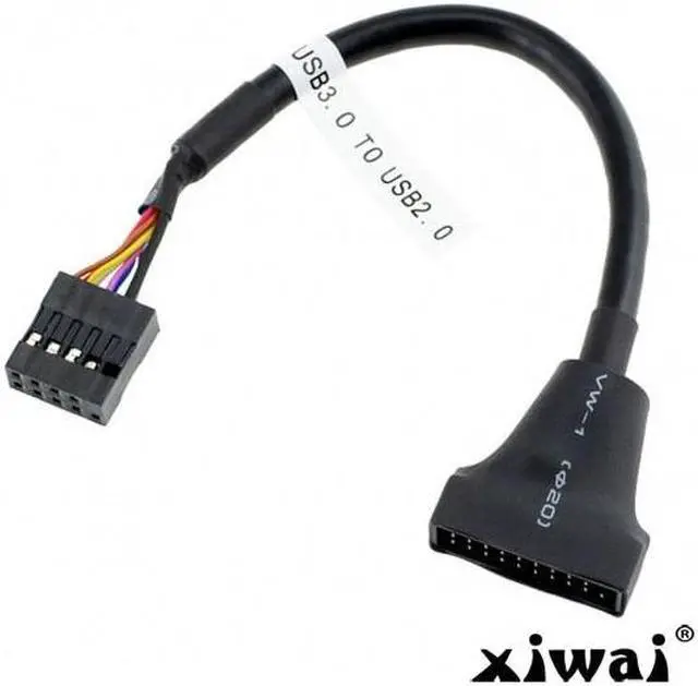 USB 2.0 9Pin Housing male to Motherboard USB 3.0 20pin Header Female cable 0.1 m Let your USB 3.0 20pin device connected the USB 2.0 motherboard.