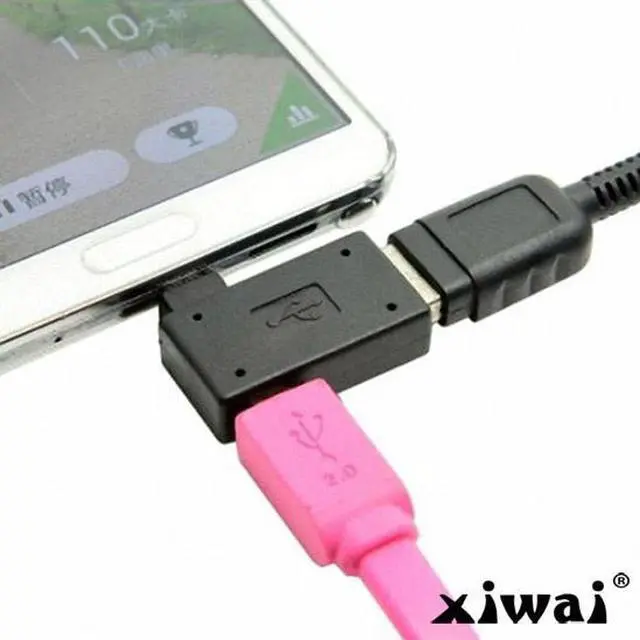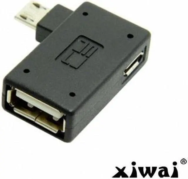 90 Degree Left Angled Micro USB 2.0 OTG Host Adapter with USB Power for Galaxy S3 S4 S5 Note2 Note3 Cell Phone & Tablet
