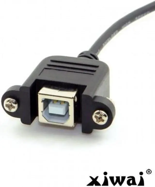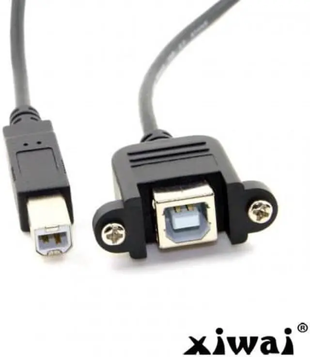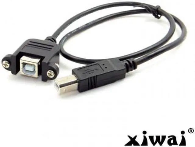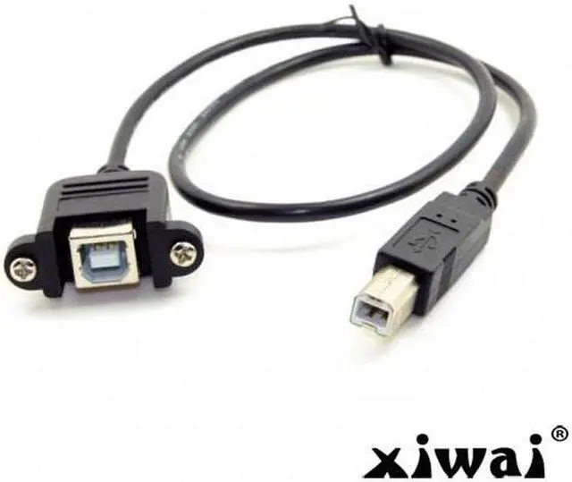 USB B Type Male to Female extension cable with screws for Panel Mount 50cm One Side : Male USB B Type The Other Side : Panel mount USB B female with screws With 28AWG+Braid Cable Cable length about : 50cm Can work for Printer Scanner & Hard Disk extension