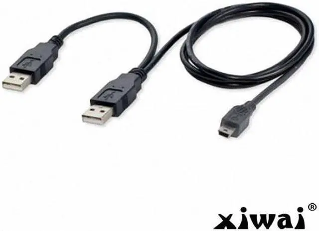 USB 2.0 Dual two A type Male to Mini 5-Pin male Y Cable, for Hard Disk Drive Case
