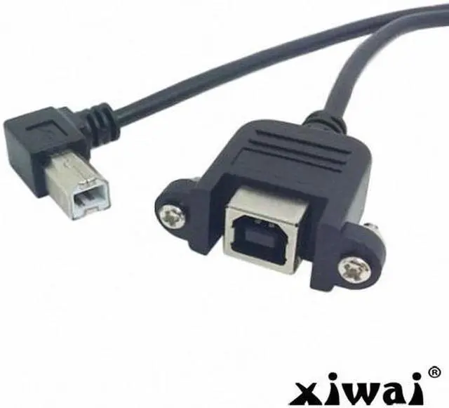 90 Degree Right Angled USB B Type Male to Female extension cable with screws for Panel Mount 50cm