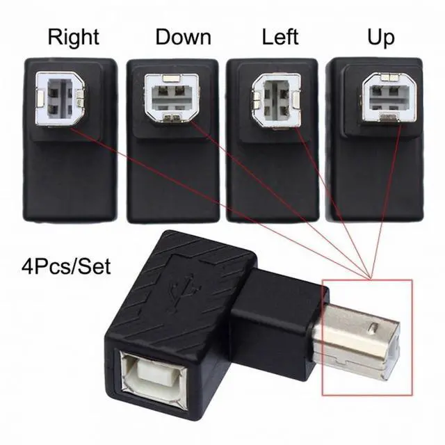4pcs/lot USB 2.0 Type-B Male to Female Extension Adapter Horizontal Vertical Angled 90 Degree for Printer Scanner