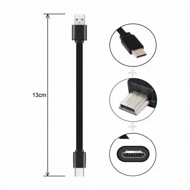 • 3pcs/lot 13cm USB 2.0 Type-A to Mini Micro USB Type-C Male Data Flat Slim FPC Cable for FPV Disk Phone
