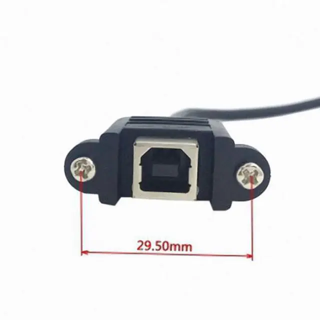 90 Degree Left Angled USB B Type Male to Female extension cable with screws for Panel Mount 50cm One Side: Male USB B Type ( 90 Degree Left Angled Type ) The Other Side: Panel mount USB B female with screws With 28AWG+Braid Cable Cable length about: 50cm
