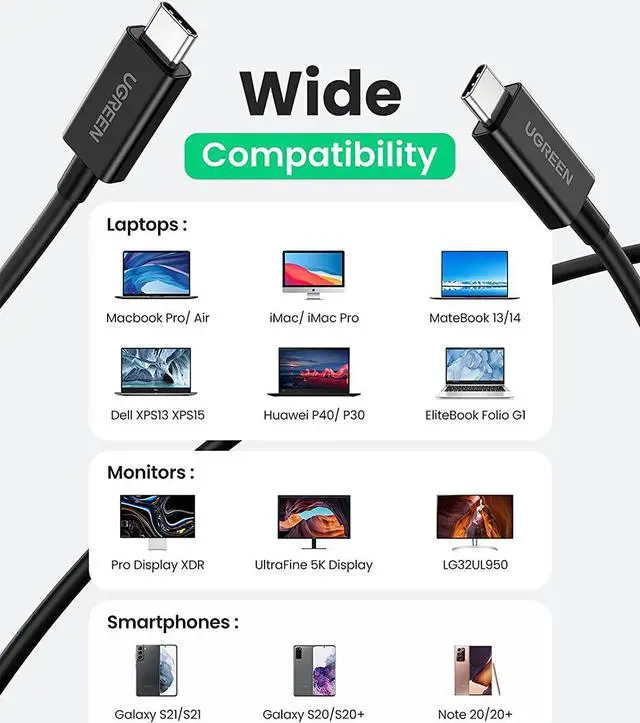 Certified Safe: UGREEN Thunderbolt 4 cable ensures reliability and durability, including built-in over-voltage protection, over-current protection, short-circuit protection, over-temperature protection.