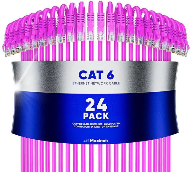 Maximm Cat 6 Ethernet Cable 5 ft (24-Pack) - High-Speed LAN Cable, Internet Cable, Patch Cable, and Network Cable - UTP, 10Gbps, 550MHz Ethernet Cord - Pink
